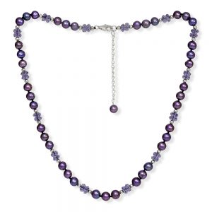 Necklace with silver beads & purple crystals with stg lobster clasp & ext. chain